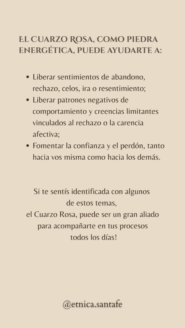 Cuarzo Rosa: La piedra del Amor Universal. Te recuerda la importancia de permitirte amar y ser amada, que podés atraer y consolidar relaciones auténticas y sanas!