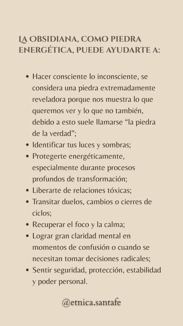 Obsidiana: La piedra de la protección y de la revelación de lo oculto! Te recuerda la importancia de identificar tus luces y tus sombras, de traer al consciente lo inconsciente para ser realmente libre!