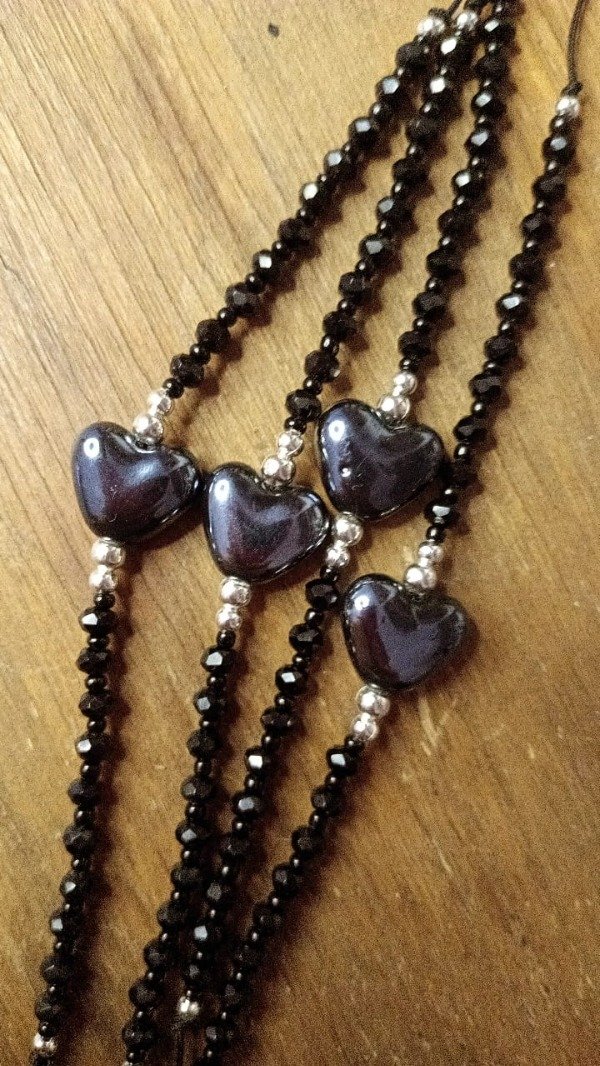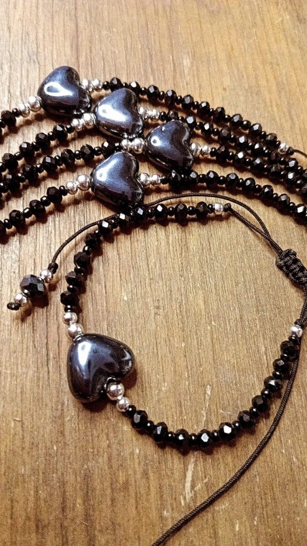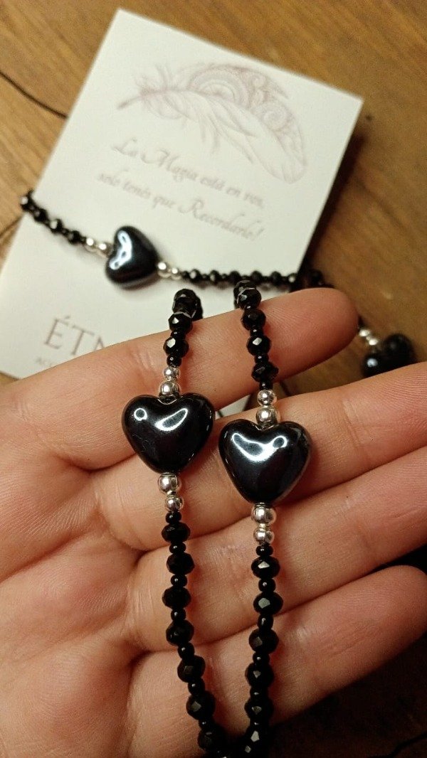 Está confeccionada con: cuenta de cerámica en forma de corazón, mini cristales de roca y micromostacillas.